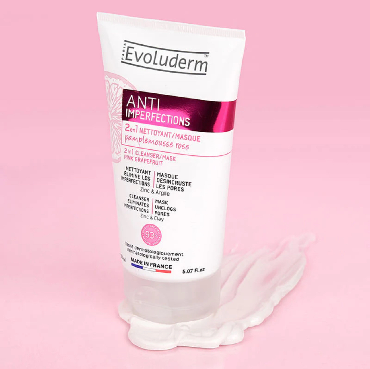 Pollution, alimentation déséquilibrée, stress ou encore fatigue, autant de facteurs qui peuvent favoriser l’apparition d’imperfections sur le visage. Composé à 93% d’origine naturelle et végan, le 2 en 1 Nettoyant/Masque Anti-Imperfections élimine les impuretés en douceur et permet de limiter l’apparition de « petits défauts » sur la peau. Ce soin 2 en 1 est conçu spécialement pour les peaux à imperfections. Sa formule riche en Argile – aux propriétés absorbantes – et en Zinc désincruste les pores en profondeur et nettoie l’excès de sébum présent sur la peau en fin de journée. Le Zinc est également un puissant antioxydant qui atténue les irritations et aide les pores à se libérer des impuretés. Grâce aux vertus astringentes de l’extrait de Pamplemousse Rose, le visage retrouve un grain de peau affiné. Jour après jour, les impuretés disparaissent et le visage affiche un teint parfait. Adieu les points noirs ! Dès la première application, la peau est visiblement plus belle et enveloppée d’un parfum délicatement énergisant. Un véritable tourbillon de fraîcheur qui vient en aide aux peaux en crise.