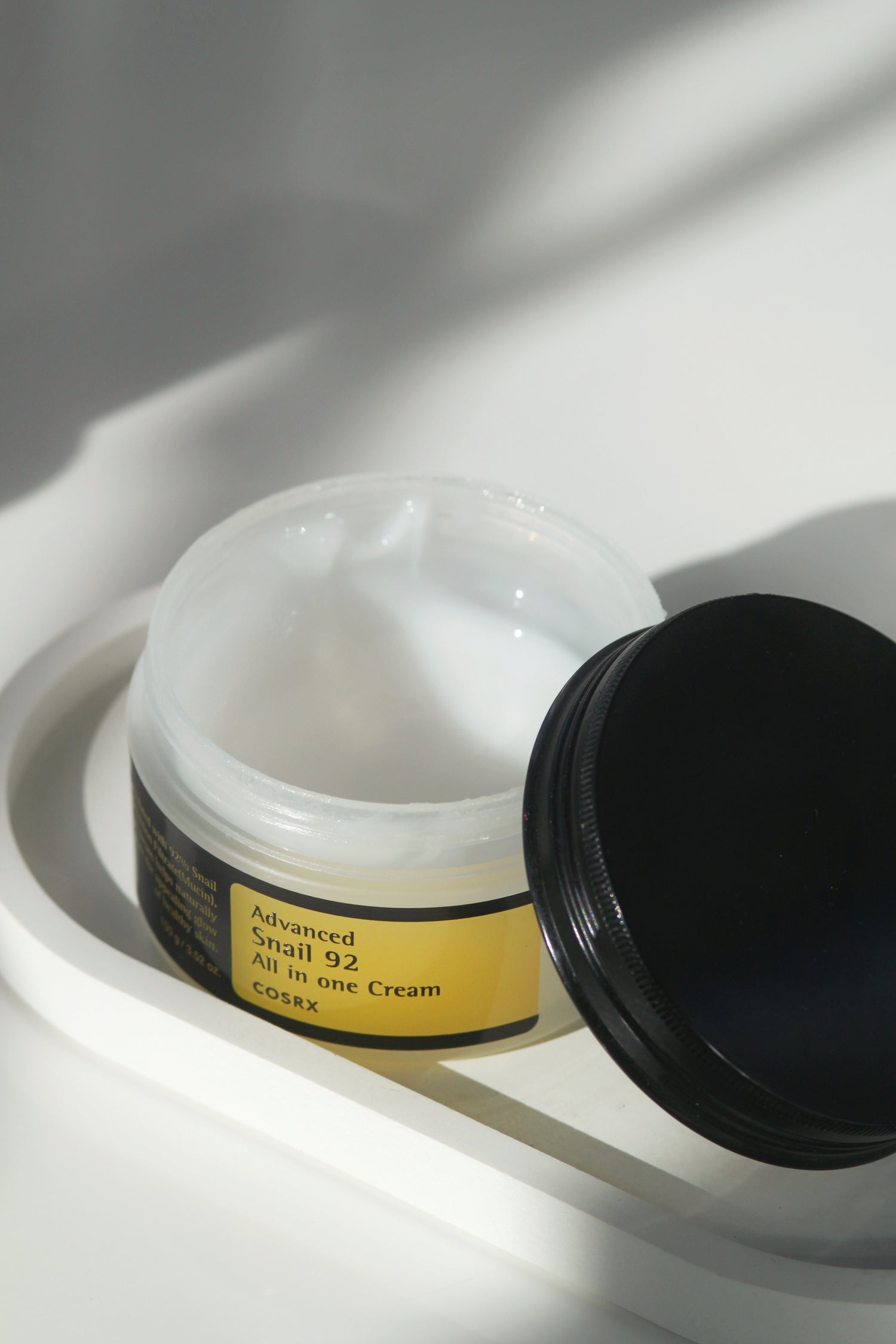 La crème visage hautement active COSRX Advanced Snail 92 All In One Cream améliore l’état de la peau en profondeur : elle hydrate et nourrit intensément, lui redonnant douceur et souplesse. Elle accélère la cicatrisation, stimule le renouvellement cellulaire, apaise les irritations et les rougeurs, unifie le teint, resserre les pores et améliore la fermeté et l’élasticité de la peau. Elle atténue les rides et ralentit le vieillissement cutané. Le filtrat de mucine d’escargot (92 %) favorise la régénération des peaux abîmées et redonne de l’éclat aux peaux ternes et déshydratées. Il stimule la synthèse de nouveaux tissus conjonctifs, hydrate, nourrit, adoucit, apaise et tonifie la peau, la rendant plus ferme et plus élastique, et lui offrant un magnifique éclat naturel. Sa formule est également enrichie en acide hyaluronique, panthénol, arginine et adénosine.